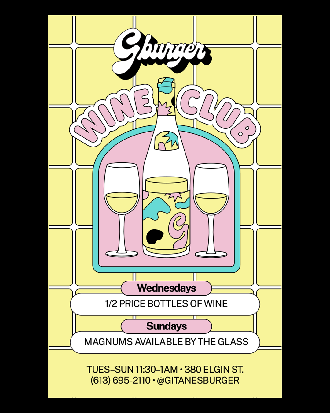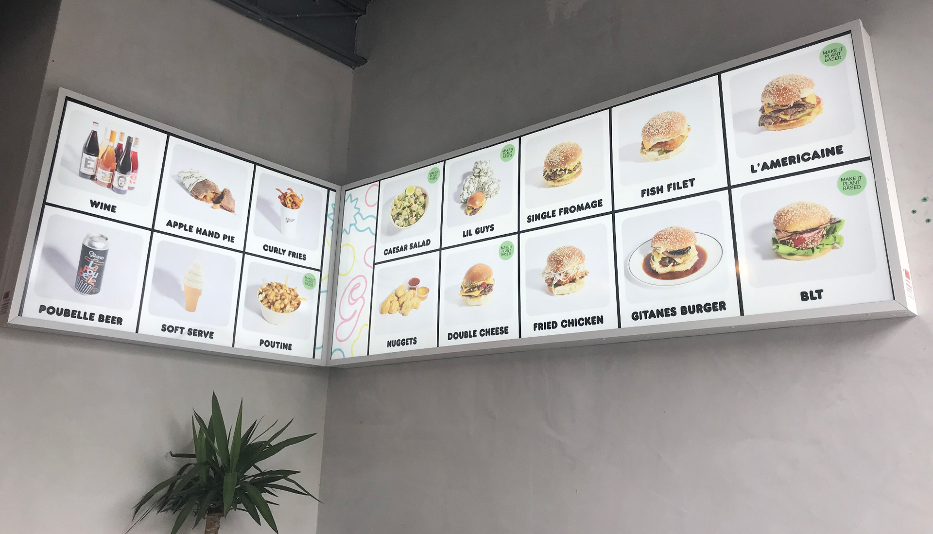 Gburger's menu offers fast-food classics prepared with premium ingredients, alongside a drink list you'd expect from a cocktail bar, featuring natural wines, craft beers, and curated cocktails.