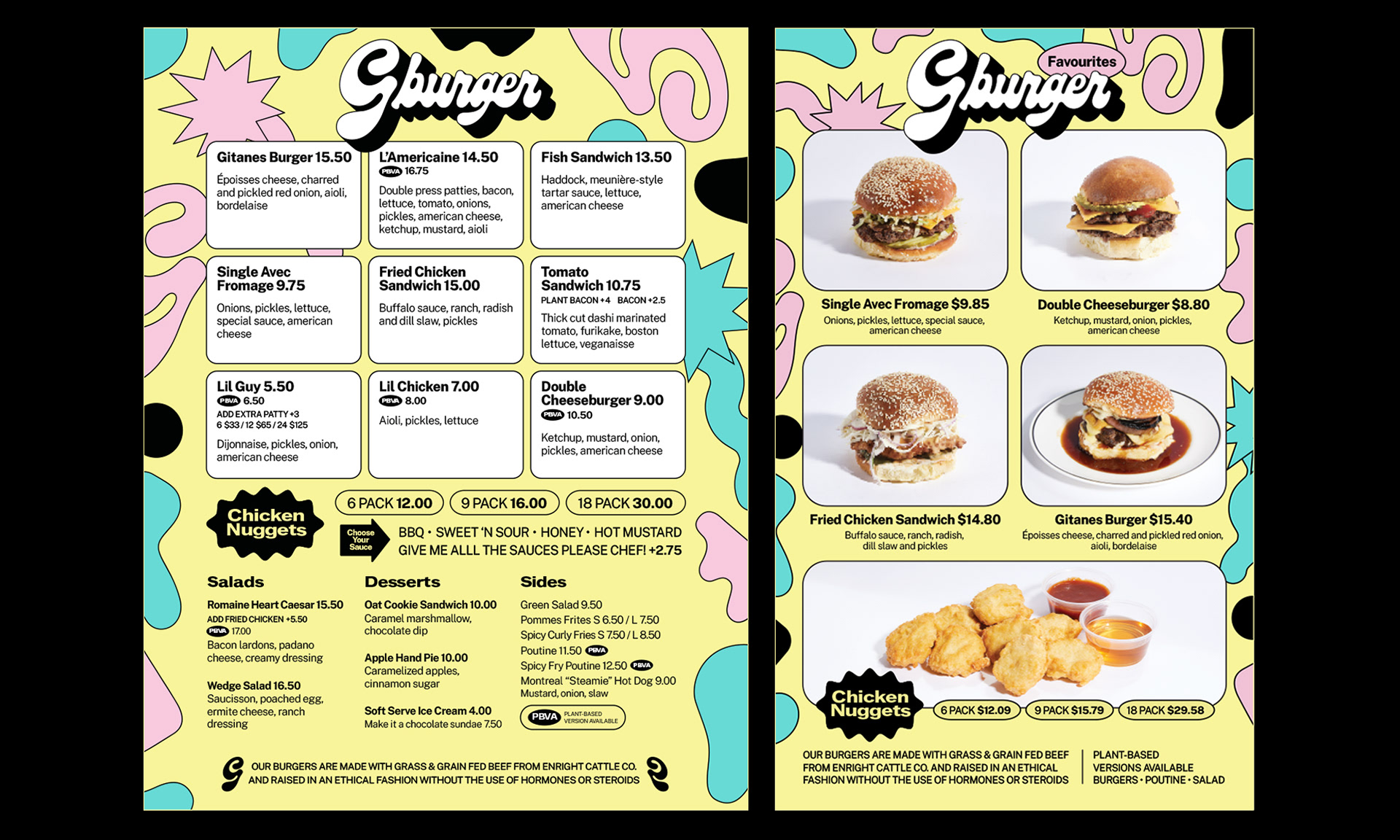 Projects for Gburger ranged from menu design to special event promotions, light-box signage, apparel and more.